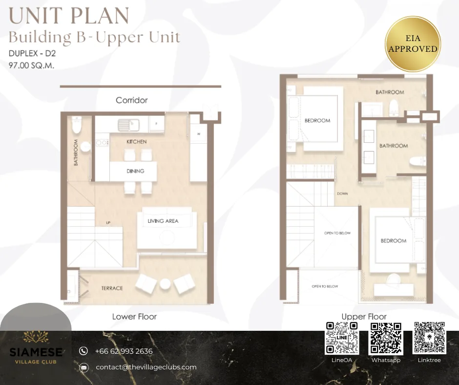 Step into luxury with this spacious duplex unit at Siamese Bangtao, designed for comfort and modern tropical living. Featuring 2 bedrooms and 3 bathrooms, this 97 sq.m residence is ideal for families, remote work lifestyles, or savvy investors.